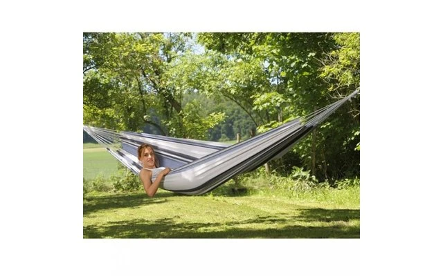 Le diverse tonalità di blu hanno un effetto rinfrescante come una brezza marina. Un’amaca nel tipico stile brasiliano. Lascialo pendere basso e stendilo in diagonale – è il modo più comodo. Tessuto in ELLTex resistente alle intemperie. Confezionato in una borsa da trasporto con un lato in tessuto e un lato in cloruro di polivinile.