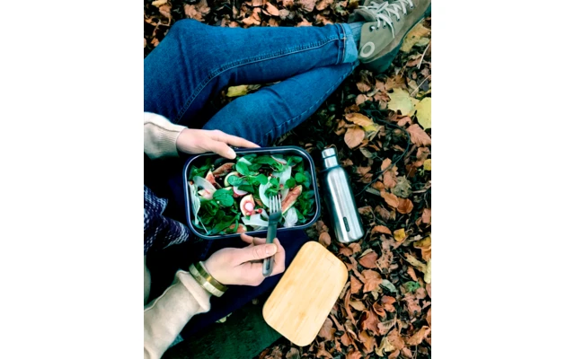 Novità: l’anello in plastica del passante è stato sostituito da un anello fisso in acciaio e il passante in pelle sintetica è stato sostituito da un materiale migliore. Anche il coperchio è completamente in acciaio inox, in modo che l’acqua non venga a contatto con la plastica. La finta pelle funge da passante per il trasporto ed è anche un bellissimo dettaglio di design.