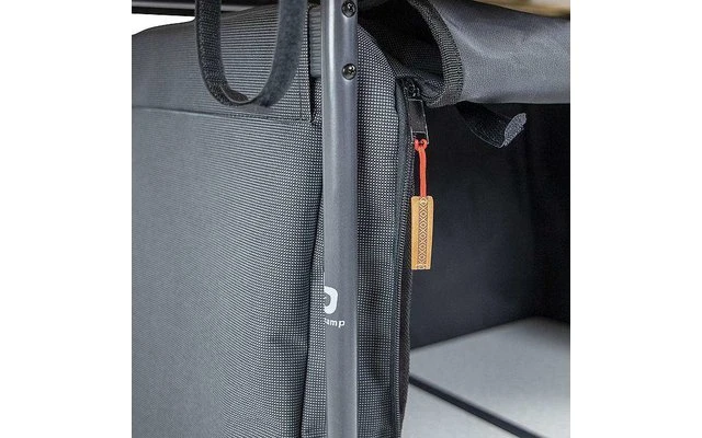 Un elegante mobile da cucina con un telaio in alluminio. La camera di cottura ha un piano in bambù. Inoltre, l’armadio può essere ripiegato in modo compatto nella borsa di trasporto fornita. Per fare questo, si spingono le gambe insieme e si mettono sotto la parte superiore. L’armadio è composto da 1 scomparto che contiene un inserto robusto. Il piano del tavolo è anche resistente al calore e all’acqua.