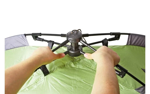 Tenda igloo automatica per 2 persone. Posizionato e pronto all’uso in pochi secondi grazie alla speciale tecnologia di tiro della corda. Lo smontaggio richiede solo un po’ più tempo. Design a tetto singolo con grande porta con cerniera. Incl. pioli e sacco da imballaggio.