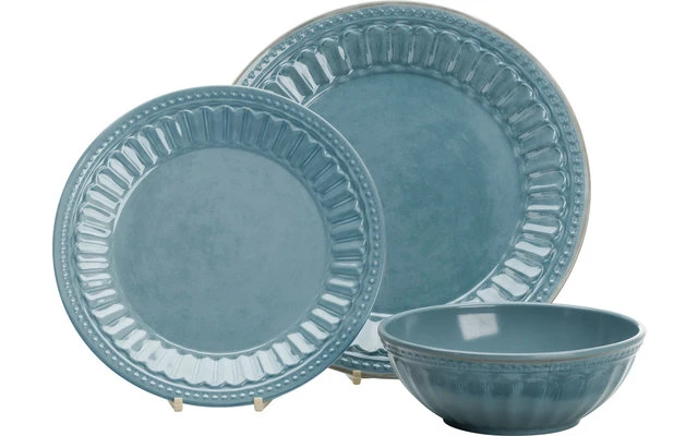 Il nobile servizio combinato composto da 4 piatti da cena, 4 piatti da dessert e 4 ciotole rende il pasto un’esperienza mediterranea! È sicuro per gli alimenti, resistente alle temperature fino a +70°C e ha un peso ridotto. La cosa migliore è che il set di stoviglie è lavabile in lavastoviglie – così c’è più tempo per socializzare.