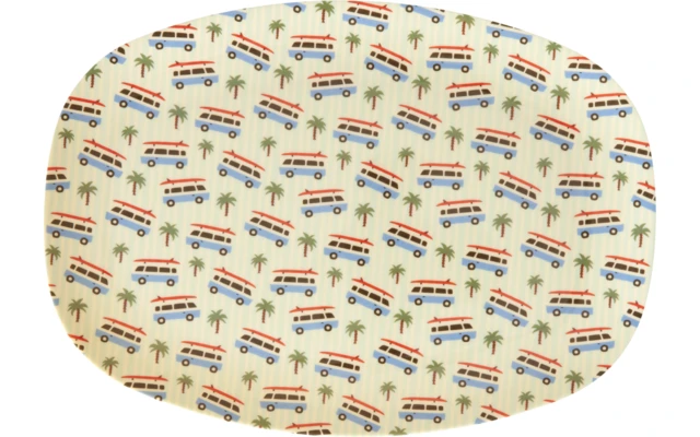 Il piatto rettangolare in melamina di Rice con design di auto.