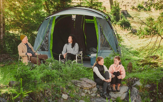 La tenda ha pali in fibra di vetro robusti ma leggeri e un guscio esterno ad alte prestazioni con una colonna d’acqua di 4.000 mm. Il pavimento in PE completamente integrato nella zona giorno e notte assicura un’esperienza di campeggio pulita, asciutta e senza parassiti.